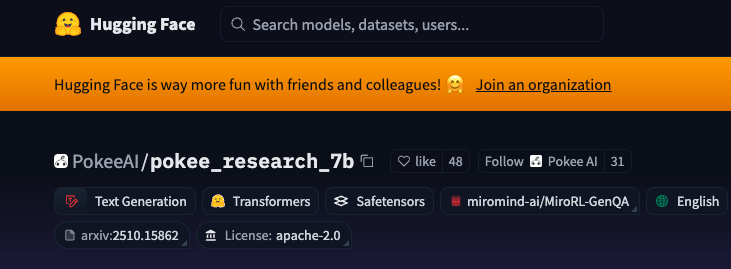 Pokee AI released PokeeResearch-7B, an open-source 7B parameter deep research agent trained with RLAIF (Reinforcement Learning from AI Feedback). The model demonstrates three core capabilities: self-correction for diagnosing erroneous tool calls, self-verification for filtering obviously incorrect outputs, and research thread synthesis for parallel analysis. It significantly outperforms all 7B-level research agents across 10 benchmark tests, with code and weights available under Apache 2.0 license.huggingface+2