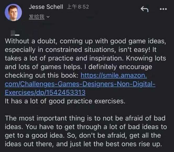 This might be a bit subjective, but I believe having a personal idol or mentor can be a huge motivator when you’re starting out in indie game development. For me, I actively reached out to teachers I admired and asked for their advice. Since I studied abroad, I would email professors in game design, sharing my work and my struggles, hoping to connect and learn from them. To my surprise, they were always happy to help. Thanks to guidance from Jesse Schell (author of “The Art of Game Design”) and game scholar Eric Zimmerman, I gained a much clearer sense of direction for my own projects.